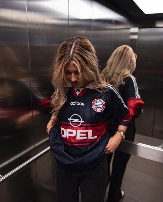 The Bayern Munich 98/99 Away Jersey is an authentic replica that captures the essence of Bayern Munich's away kit from the 1998/1999 season. Made with high-quality materials, it offers both comfort and durability. The navy blue and silver design makes a bold statement, while the iconic Bayern Munich crest proudly displayed on the chest shows your unwavering support for the team. Its V-neck collar and short sleeves add a touch of timeless style. Available in various sizes, it's the perfect gift for any Bayern Munich fan. Show your love for one of the most successful clubs in European football history with the Bayern Munich 98/99 Away Jersey.