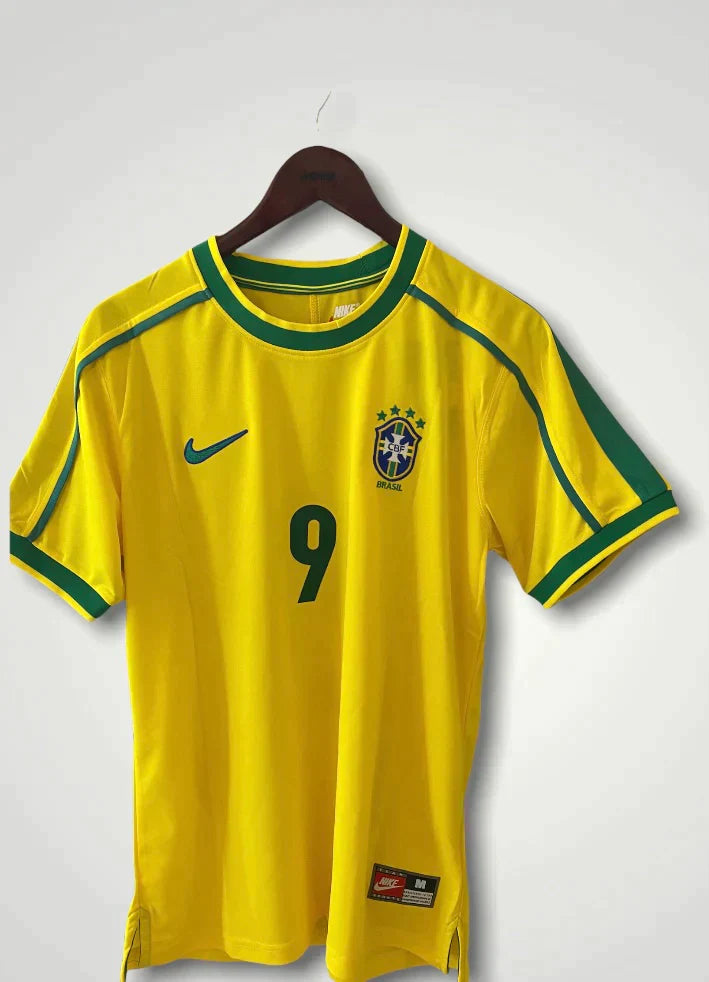 The Brazil 97/98 Home Jersey is a classic replica of the kit worn by the Brazilian national football team during the 1997/1998 season. With its iconic yellow colour and green accents, this jersey represents the rich history and success of Brazilian football. Made from high-quality materials, it offers comfort and durability. The Brazilian Football Confederation (CBF) crest proudly adorns the front, symbolizing the team's heritage and achievements. Whether you're a fan or a collector, this jersey is a must-have to showcase your support for Brazil's legendary national team.