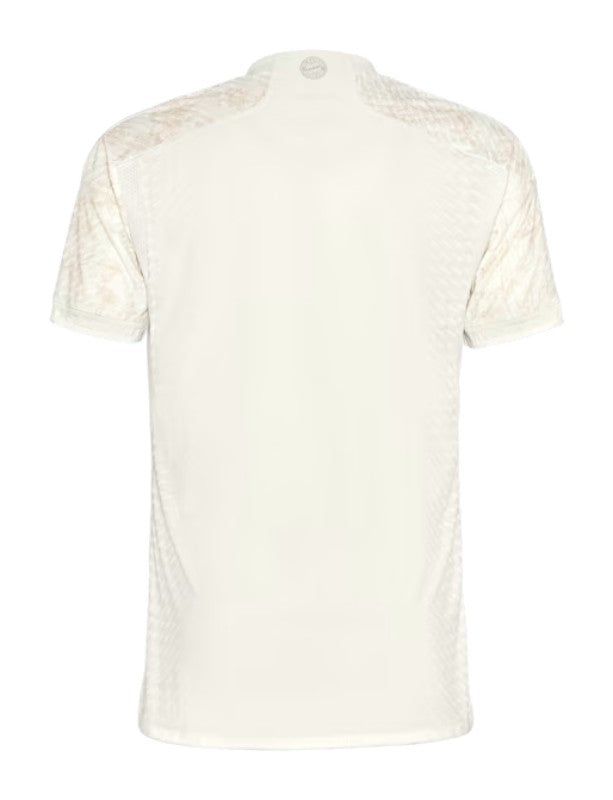 Celebrate FC Bayern Munich's heritage with the 2023-2024 Third Kit. It pairs white with red and symbolizes tradition and spirit. Engineered for performance, the kit proudly displays the club crest and meticulous detailing. Whether in the stands or on the field, the FC Bayern Munich 2023-2024 Third Kit is an essential emblem of pride for fans worldwide. Embrace the heritage – get yours now and be part of the club's enduring legacy!