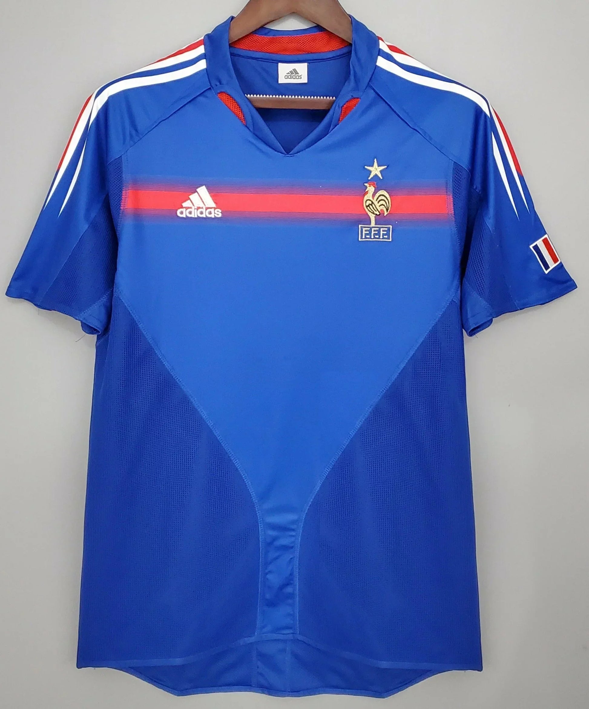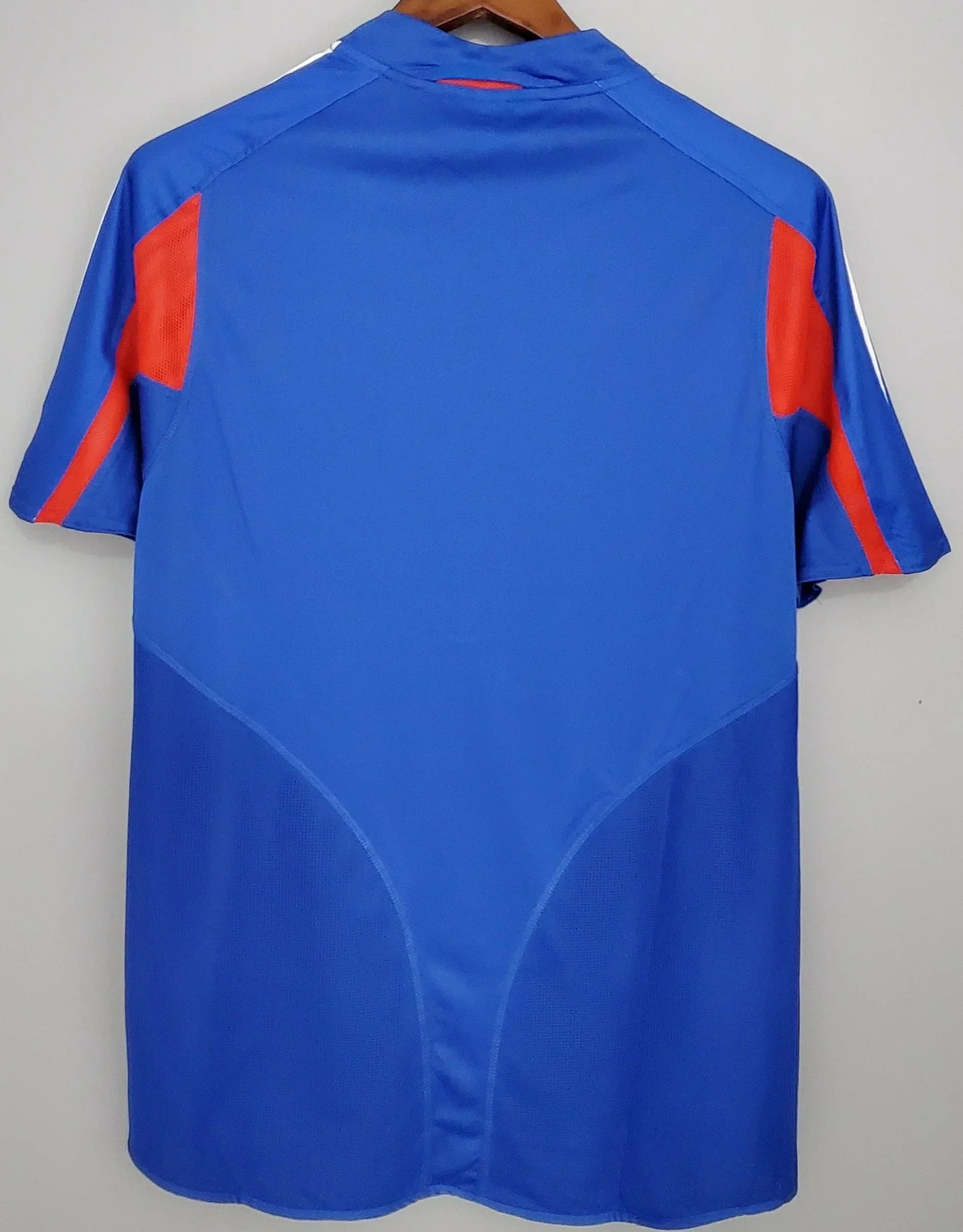 The France 04/05 Home Jersey is a classic and iconic representation of the French national football team. Designed in the traditional colours of blue, white, and red, this jersey showcases the pride and heritage of French football. The jersey features a clean and elegant design with a blue base, white accents, and subtle red details. The French Football Federation's crest, including the famous Gallic rooster, is prominently displayed on the chest, symbolizing the team's identity and history. Crafted with high-quality materials, this jersey offers optimal comfort, breathability, and durability. Whether you're watching the game or showing your support off the field, the France 04/05 Home Jersey is a must-have for any passionate fan of French football.