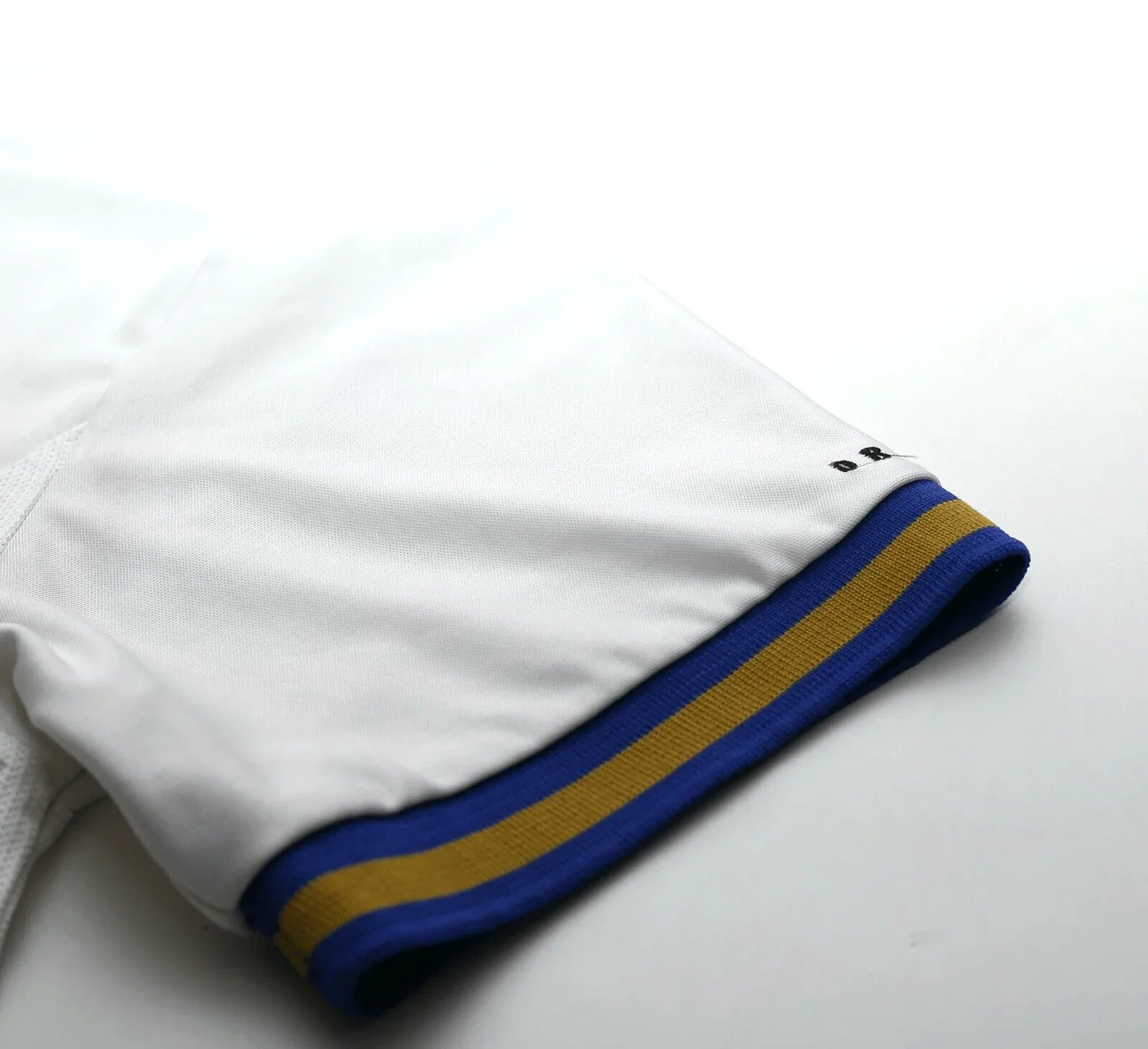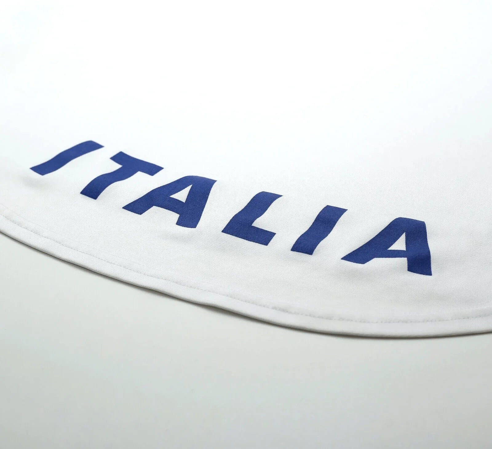 Embrace football history with the Italy 1997/1998 Away Jersey, a vintage collector's item. This iconic white jersey, featuring navy blue accents, an elegant embossed pattern, and a traditional polo collar, exudes classic style. Made from high-quality, breathable fabric, it offers comfort and a regular fit. Proudly display the FIGC badge and Diadora logo, symbolizing the era's esteemed partnership. Relive moments with legends like Roberto Baggio and Paolo Maldini, and add a timeless piece to your collection. Perfect for collectors and football enthusiasts alike.