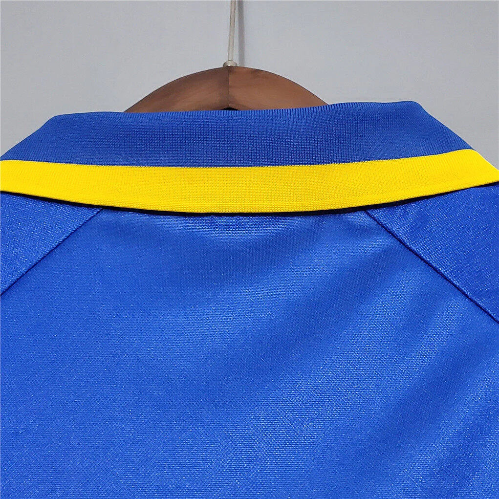 The Juventus 95/97 Away Jersey is a classic and distinctive jersey that captures the essence of the club's style during that era. It features a striking yellow colour as the primary base, with a blue stripe running horizontally across the chest. The jersey showcases the Juventus club crest on the left side of the chest, along with the sponsor logo and brand details. Made with high-quality materials, this jersey provides comfort and durability on and off the field. The Juventus 95/97 Away Jersey is a cherished piece for fans and collectors, representing a significant period in the club's history. Whether worn during matches or proudly displayed, this jersey embodies the spirit of Juventus and their strong tradition of excellence.
