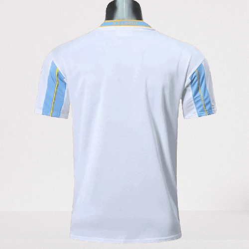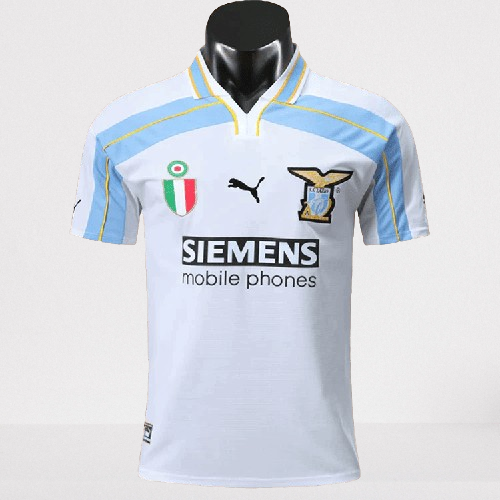 The Lazio 00/01 Home Jersey represents the rich history and tradition of the Italian club. The jersey features a classic sky blue colour as the base, which is the iconic colour associated with Lazio. It incorporates a stylish and minimalistic design, with a V-neck collar and short sleeves. The club's logo is proudly displayed on the left side of the chest, while the team's sponsor logo is prominently featured on the front center. The jersey is made from high-quality materials to ensure comfort and durability. With its clean and timeless design, the Lazio 00/01 Home Jersey is a must-have for fans and collectors who appreciate the club's heritage.