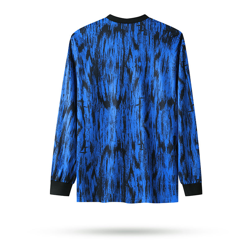 Step into the nostalgia of early '90s football with the 1992-1993 Manchester United Away Jersey. Featuring a distinctive blue and white design with an abstract pattern, this jersey embodies the bold style of the era. Crafted from high-quality, breathable fabric, it offers comfort and durability both on and off the pitch. Complete with a retro crest and classic Umbro detailing, this jersey is a must-have for fans and collectors alike, commemorating a memorable chapter in Manchester United's storied history.