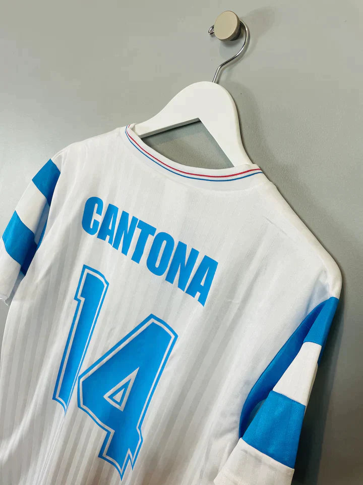 The Marseille 90/91 Home Jersey is a historic and cherished jersey worn by Olympique de Marseille during the 1990-1991 season. The jersey features a classic design with a white base colour and light blue and orange horizontal stripes across the chest. The collar and sleeve cuffs are also adorned with light blue and orange accents, adding to the overall stylish look. The club's crest is proudly displayed on the left chest, representing the team's identity and heritage. The Marseille 90/91 Home Jersey is associated with a successful period in the club's history, including their triumph in the French Division 1 and their memorable journey in the UEFA Champions League. It is a beloved jersey among Marseille fans and holds significant sentimental value.