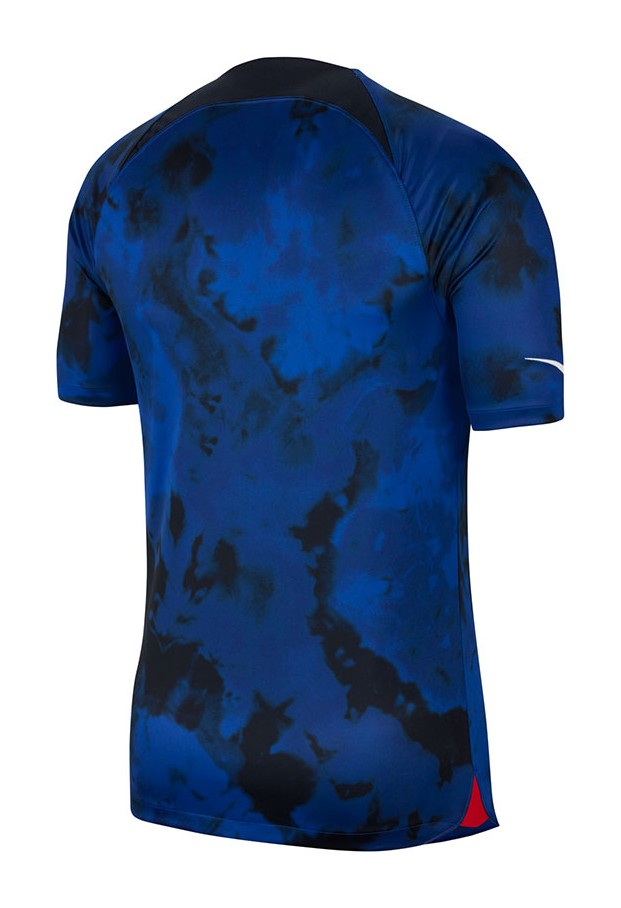The USA 2022 Away Jersey is a symbol of national pride and excellence for soccer fans and athletes. It features a sleek design with a vibrant obsidian blue color, representing determination and strength. The jersey is made with high-performance materials, incorporating sweat-wicking and ventilation properties for maximum comfort. The iconic USA national team crest is proudly displayed on the front, while a dynamic graphic inspired by American culture adorns the back. The ensemble is completed with coordinating obsidian blue shorts and socks. Whether in the stands or on the field, this jersey represents unity and camaraderie as fans and players support the US national team in their pursuit of World Cup glory.