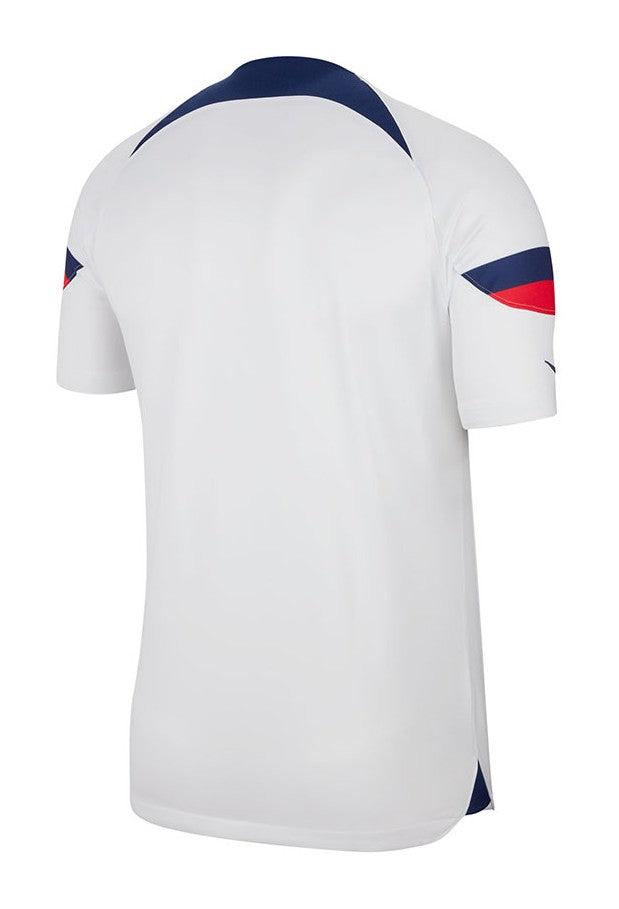 The USA 2022 Home Jersey is a powerful representation of national pride and soccer heritage. It features a brilliant white color with the iconic USA national team crest on the front, symbolizing unity and the pursuit of greatness. The jersey is designed with advanced technology for enhanced performance and comfort, including sweat-wicking properties and ventilation panels. It is lightweight and durable, allowing players to move freely on the field. Paired with matching white shorts and socks, this classic design celebrates tradition while representing the evolving nature of American soccer. By wearing this jersey, fans can show their support for the US national team as they compete for glory at the World Cup, leaving a lasting impact on the sport's history.